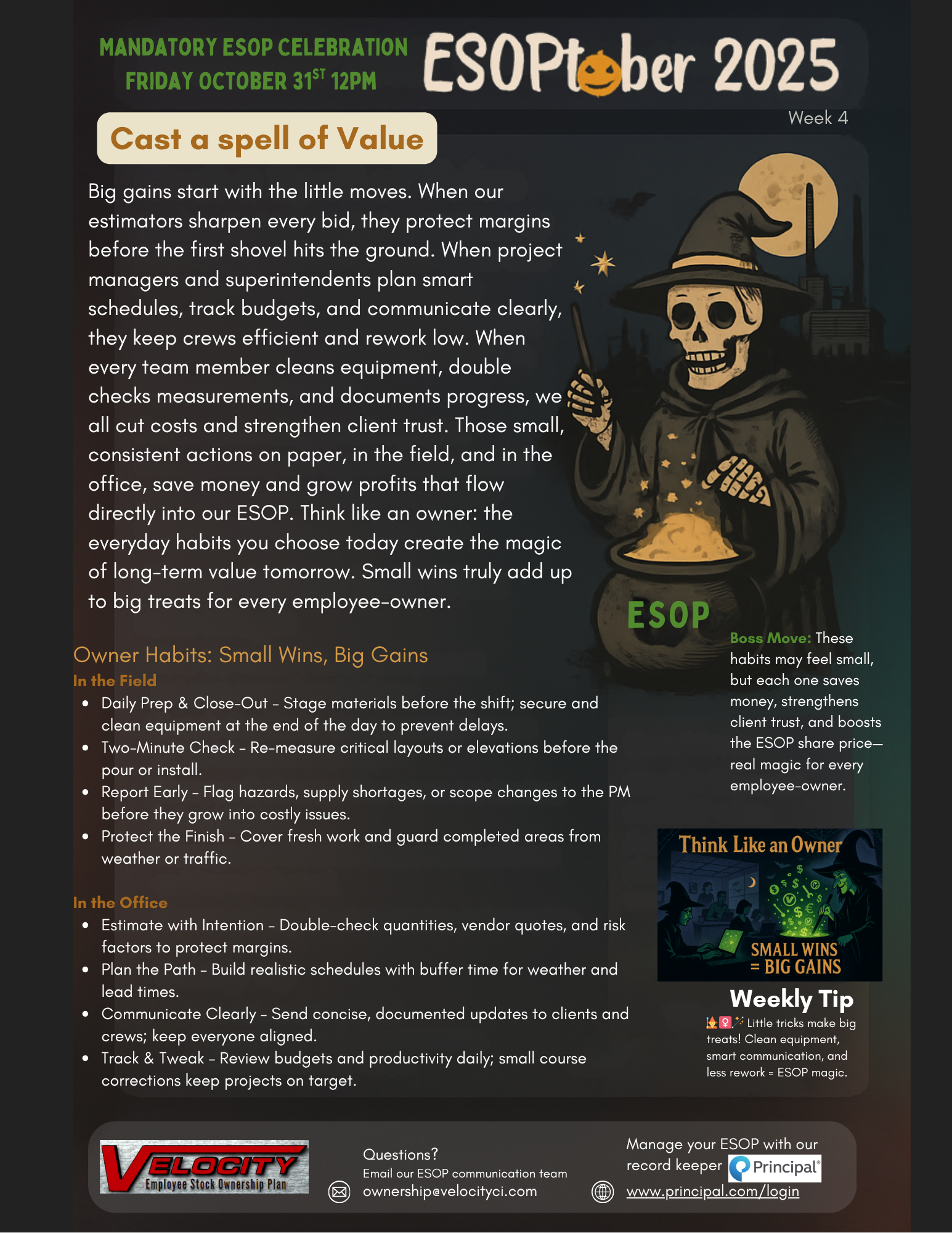 Throughout October, keep your eyes open for more spooky surprises and ESOP wisdom coming your way.